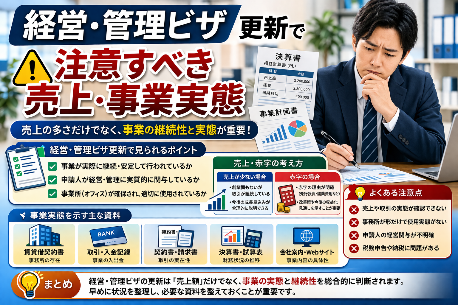 経営・管理ビザ更新で重要なのは、売上の大きさだけではありません。