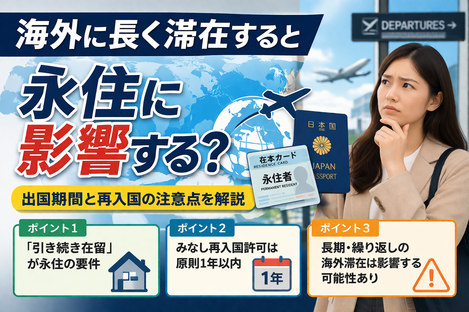 海外に長く滞在すると、永住に影響する可能性はあります。