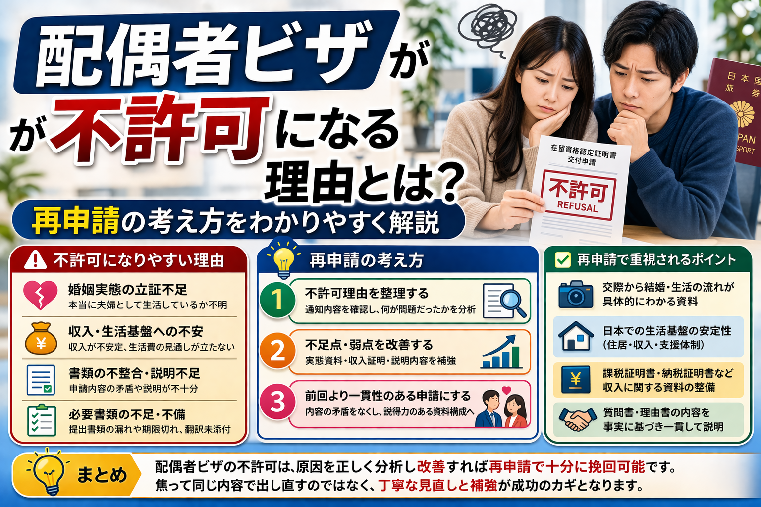 配偶者ビザは、「結婚しているから通る」でも「一度ダメなら終わり」でもありません。